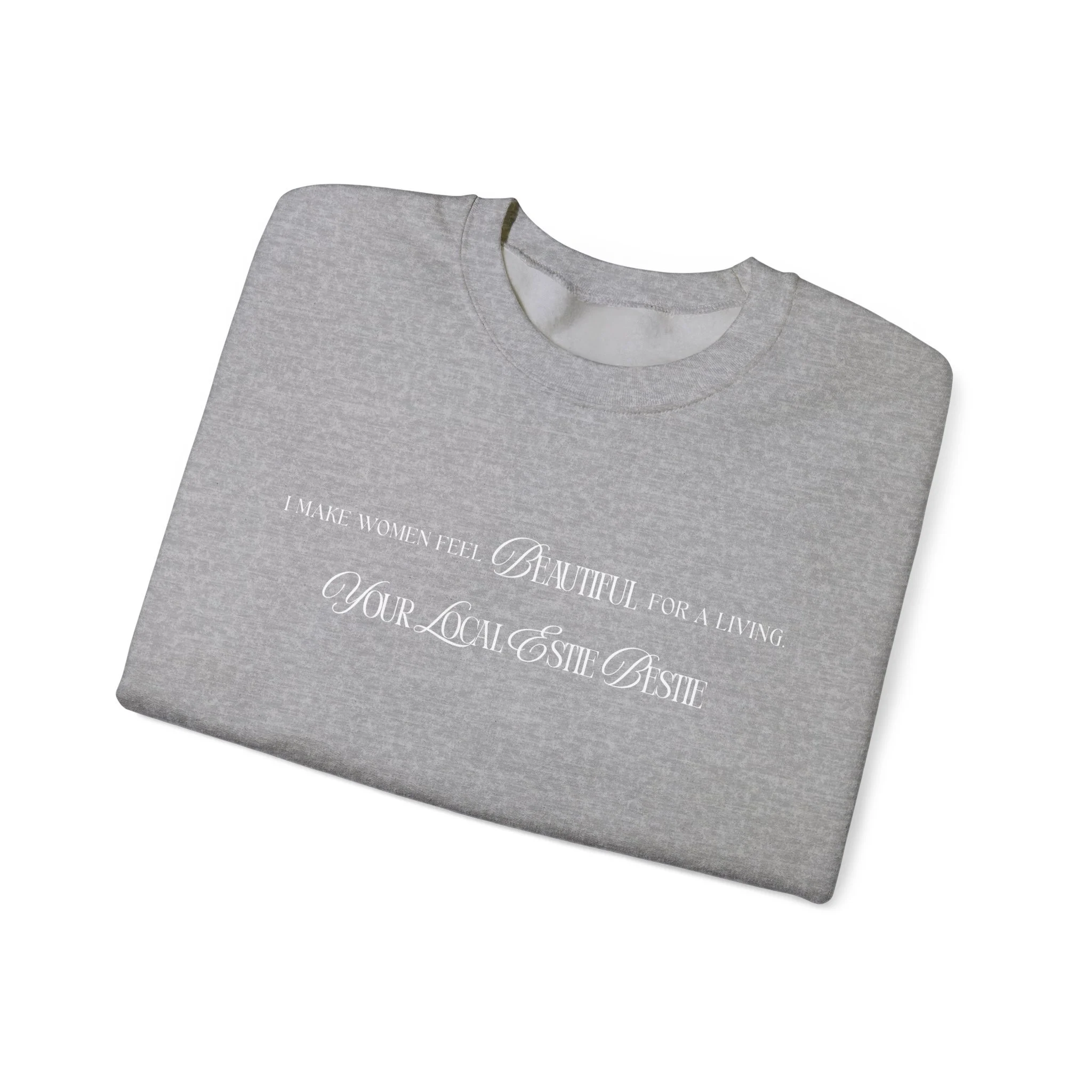 Designed for the estie who pours confidence into every client, this sweatshirt is a statement of purpose. “I make women feel beautiful for a living” meets “your local estie bestie” for the perfect blend of pride, passion, and personality. Wear it as your uniform, your reminder, and your esthetician energy all in one.